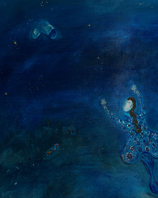 И вот уже всё превращается в загадочную Вселенную: даже сочные мазки масляной краски напоминают сияющие звёзды.