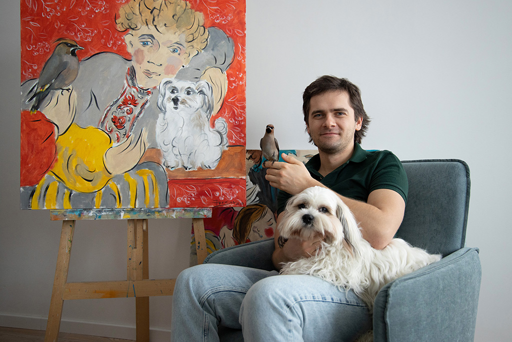 Чудо случилось тогда, когда я обрёл верного друга – белоснежного Паблушу. Чудо повторилось, когда мы с ним приютили свиристеля Стёпу, который станет героем нескольких картин.