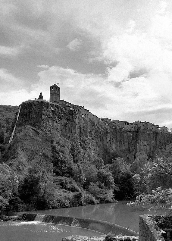 Налево–направо, направо–налево и ещё бесконечное количество раз. Руль приходится быстро крутить. Пассажиров подташнивает. Это всё потому, что мы едем не по автостраде – навигатор не нашёл более спокойной дороги, а выбрал старую, проложенную серпантином. Немного беспокоимся – туда ли вообще мы едем. Наша цель – маленькая деревушка Кастельфольит де ла Рока, которая приютилась на отвесной скале.
