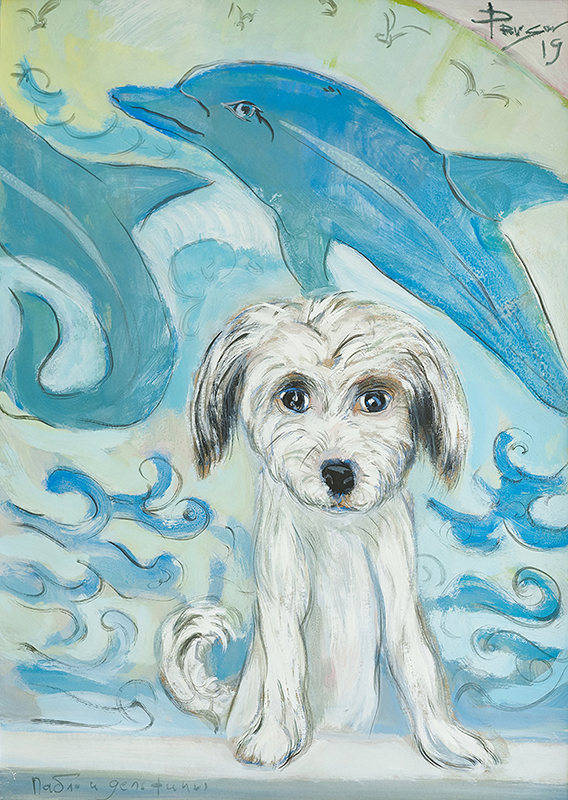 Пабло и дельфины. 2019. Бумага, темпера. 70х50 см