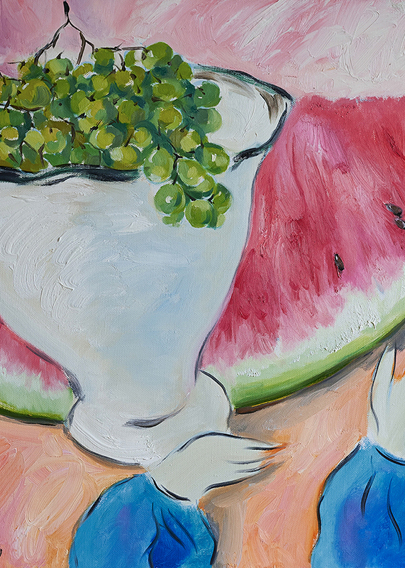 Арбуз и виноград в вазе. 2019. Фрагмент