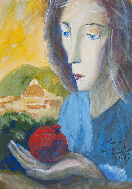 Мадонна с гранатом (Флорентийская Мадонна). 2015. Бумага, темпера. 29,7x21 см
