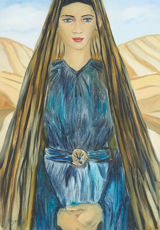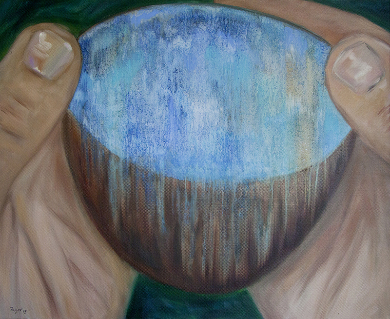 So Matera gifted me the «Turquoise Madonna» when I took the train and left the town. When I saw a hilly landscape through the window I imagined a strong girl in a long headscarf – she kept secrets of those places. My imagination created the composition but I managed to paint it on canvas only after a month in my studio.