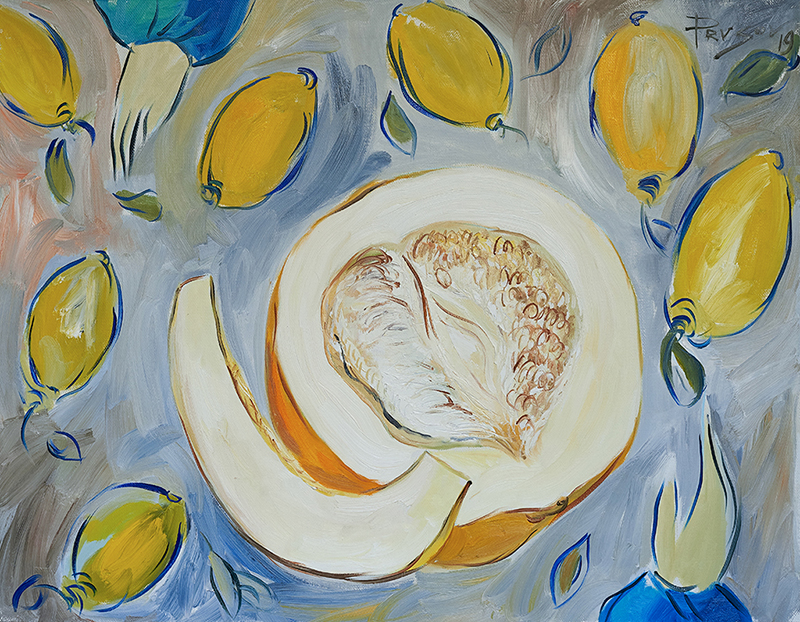 A melon and lemons. 2019. Canvas, oil. 70x90 cm