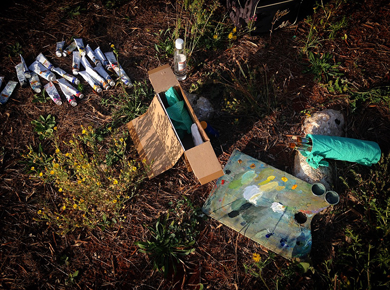 July. The heat. I am going to the south of Italy – to work in open air. I got prepared very well – made a special box for small canvases on cardboard to transport just finished works; I did not bring a heavy sketch box with me and instead I used a light portable easel, and I put paint and brushes along with pinene into a special backpack.