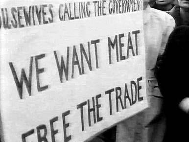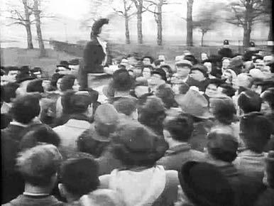 Кадры из английского хроникального сюжета «Уголок ораторов». Митинг беднейших жителей Лондона в Гайд-парке за отмену административно-командных мер регулирования потребления мясных продуктов (Великобритания, 1951)