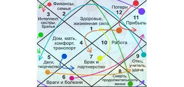 Дома расположены в строгом порядке, от первого до двенадцатого. Это видно на рисунке. Цифрами обозначены номера домов. Каждый дом отвечает за множество сфер нашей жизни: