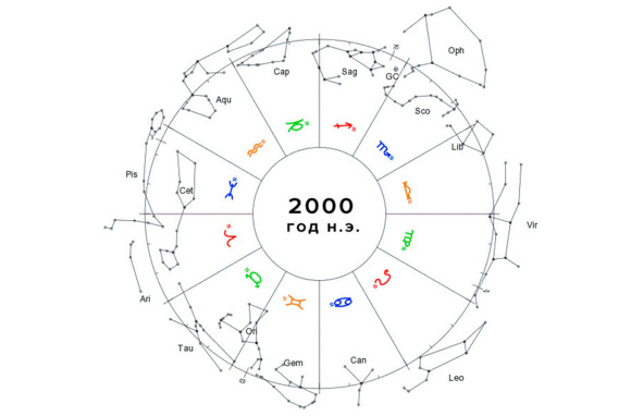 Небольшое непопадание созвездий с границами знаков на 10—15 градусов