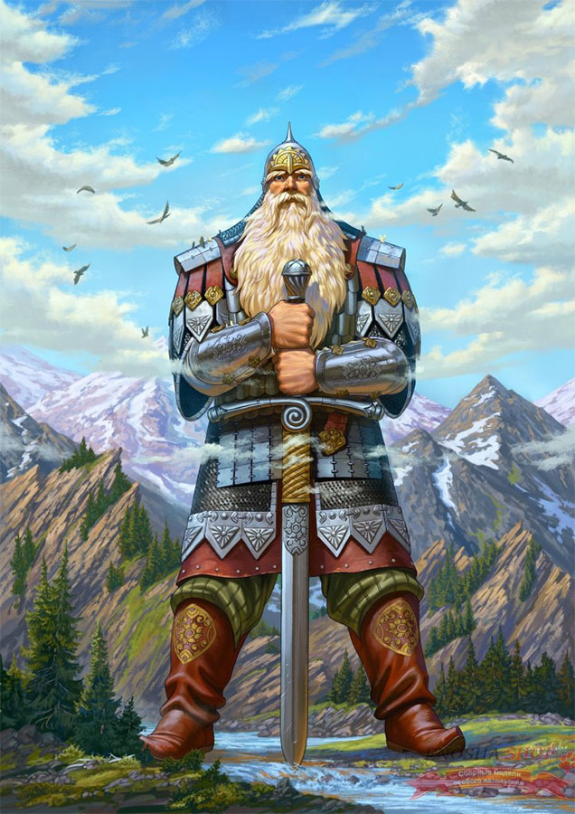 Добрыня устремился на вражеское войско очень быстро, он чувствовал дыхание полутора тысяч братьев за спиной, что придавало ему уверенности, сил и быстроты ногам. Святогор, первый соратник Добрыни и старший брат Белогора, старался не отставать от воеводы, но это невозможно, в скорости не было Никитичу равных. Хотя для человека ростом примерно три метра и весом два центнера, Святогор бежал на удивление быстро. У завоеводчика был тоже особый меч – кладенец, сделанный специально для него, полутораметровый и толстенный. Защитой ему служила сверхпрочная массивная кольчуга.