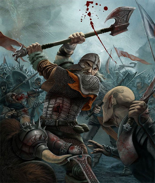 Добрыня медленно поднял свой меч. У него их было два, каждый представлял особенное оружие. Защищался он небольшим круглым щитом, который носил на спине. Русы замолчали. Три секунды стояла гробовая тишина. И тут же с левого берега ударили по остановившимся хазарам орудия. Ядра попадали в самое сердце неприятельской орды. Двиты били точно по целям. Но хазар было так много, что место воронки в мгновение заполнялось тразами со своими злобными наездниками. Тугарин оперативно отправил отряд во главе с Колываном на левый берег для уничтожения дивизии артиллеристов. Основное же войско, оправившись, продолжило свой гнусный набег на Асгард.