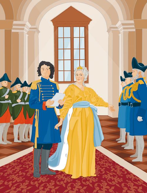Сразу после свержения мужа Екатерине надо было прочитать перед своими гвардейцами манифест – такой документ, в котором новый правитель обещает тем, кто его поддержит, всякие благодеяния: кому денег, кому дворянство, кому высокие чины… Целую неделю Екатерина готовила этот манифест, переписала его гусиным пером на белоснежную бумагу, а в самый нужный момент – хвать! Нет его, потерялся… Никто найти не может. Царица тогда ещё молода была и легкомысленна, но позже, конечно, набралась ума. А в тот момент растерялась, что делать – не знает. Тут к ней Фёдор Волков подходит и говорит: