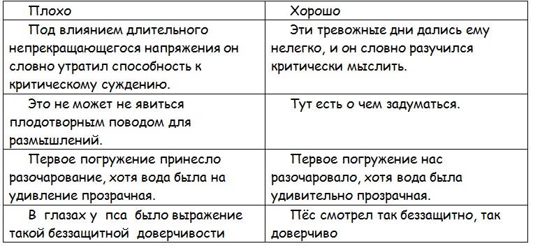 Нора Галь делает вывод «Все тот же спасительный глагол мгновенно преображает фразу, она становится более четкой, чистой, динамичной.