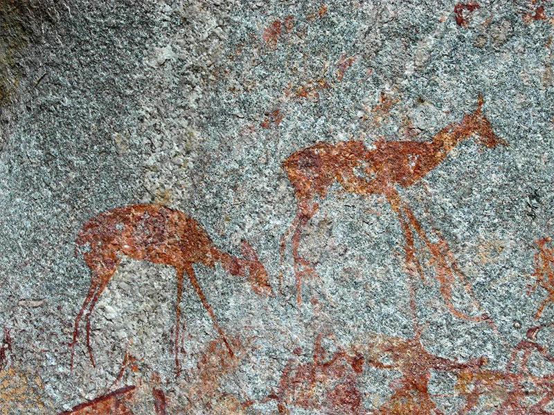 Первые поселения на землях современного Зимбабве датируются палеолитом. Археологическими находками данного периода являются главным образом каменные части орудий, реже изделия из кости. Более многочисленные находки мезолита и неолита – орудия труда, оружие, посуда[2]. Около 6000–5000 лет до н. э. населяющую эту территорию племена, вытеснили бушмены, оставившие после себя наскальную живопись, повествующую о нелегкой жизни охотников-собирателей. Некоторые из лучших рисунков находятся в пещерах Матопо Хиллс к юго-востоку от Булавайо, самые известные из них пещеры Бамбата, Нсватуги, Инанке и Силозване[3].