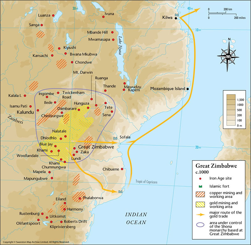 С начала XIII века происходит дальнейшая эмиграция шона[16], и в 1220 г. они создают новое королевство – Зимбабве (1220–1450). Его столицей стало Большое Зимбабве, построенное к северу от Мапунгубве.