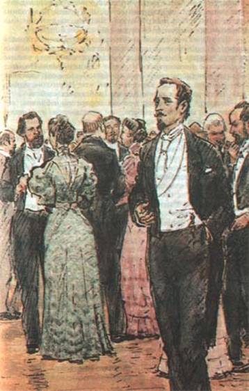 В хорошо сшитом фраке и белом галстухе, он глядел совсем красавцем. Несколько осунувшееся, побледневшее лицо и слегка ввалившиеся глаза, вследствие бессонной ночи, придавали ему еще более интересный вид.
