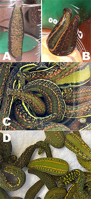 Рис. 1. Пиявка медицинская (Hirudo medicinalis): A—B – пиявка медицинская лечебная (Hirudo medicinalis medicinalis), фото 14.10.2009; С – пиявка медицинская аптекарская (Hirudo medicinalis officinalis или verbana), фото 23.08.2020; D – пиявка медицинская восточная (Hirudo medicinalis orientalis), фото 27.07.2020