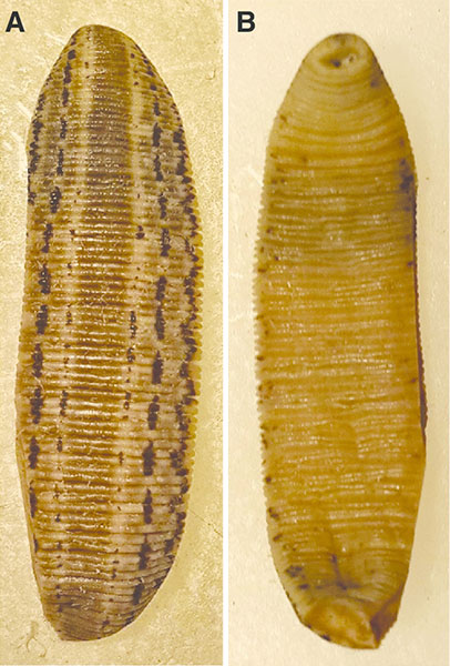 Рис. 3. Пиявка турецкая Hirudo sulukii из озера Sülüklü Lake, Turkey (Saglam et al., 2016): A – вид со стороны спины; B – вид брюшка (https://en.wikipedia.org/wiki/Hirudo_sulukii#/media/File:Hirudo_sulukii.png)