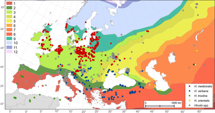 Рис. 4. Ареал природного проживания медицинской пиявки (Utevsky S. et all., 2010)