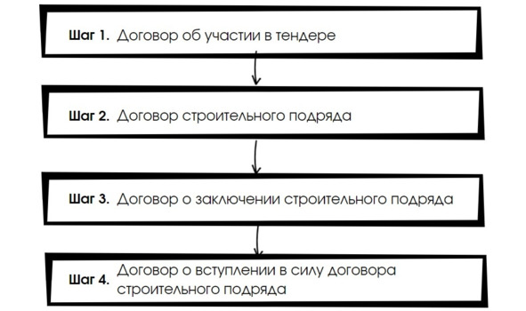 Сама по себе процедура подготовки и заключения контракта на основе международных проформ FIDIC условно может включать и, как правило, включает четыре этапа (шага):