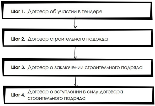 Практика предусматривает, что наиболее часто договор строительного подряда заключается одним из двух способов: