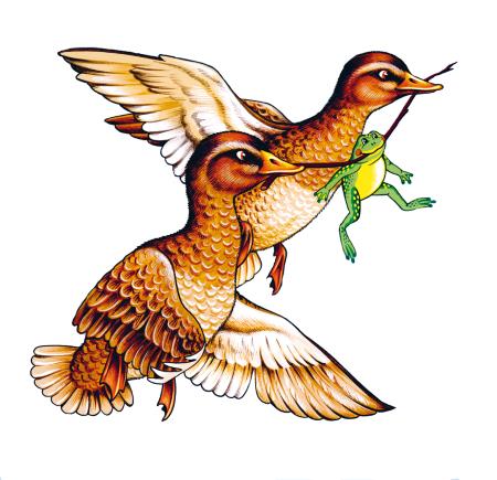 – Смотрите, смотрите! – кричали дети в одной деревне. – Утки лягушку несут!
