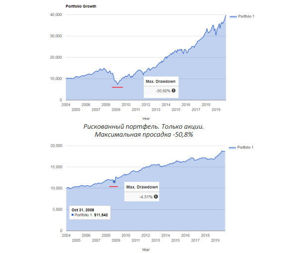 Портфель с потенциально низким уровнем просадки подойдет тем, кому деньги могут понадобиться в любой момент. Через 3-6-12 месяцев после начала инвестирования.