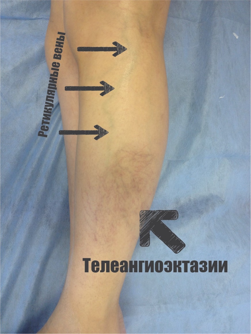 Рисунок 3. Телеангиоэктазии и ретикулярные вены
