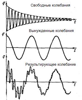 – вынужденные колебания без учета сопротивлений (, в формуле получается, что первый член является вынужденными колебаниями, остальные два члена свободными колебаниями)