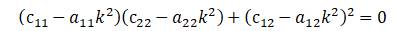 Полученная система уравнений имеет решение, отличное от нуля в случае равенства нулю определителя этой системы.