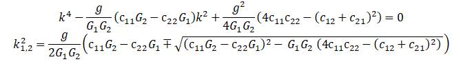 Для системы с 2 степенями свободы, уравнения частот записываются в виде: