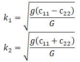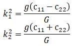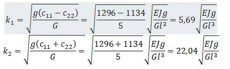 Значения частот k1 и k2 по результатам сопроматского расчета (см. работу Беляева [5]):