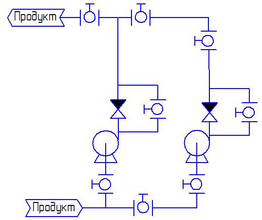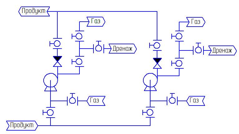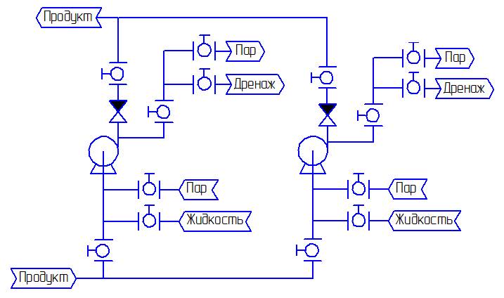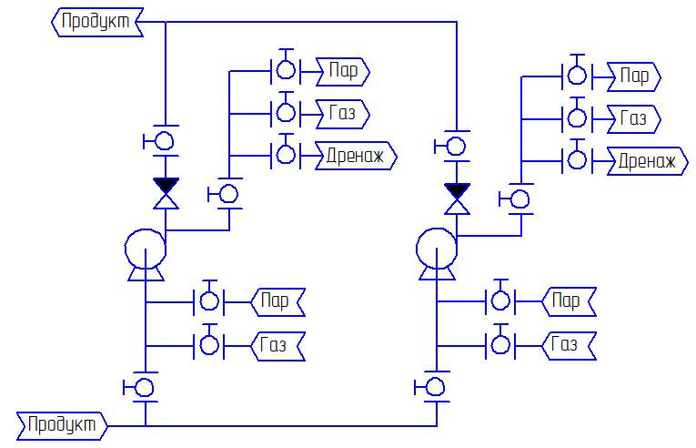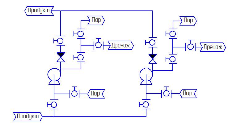 – схема обвязки для пропариваемых и продуваемых насосов: