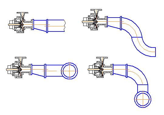 – высасывающий трубопровод выполняют максимально коротким без сужений и поворотов для уменьшения гидравлических потерь