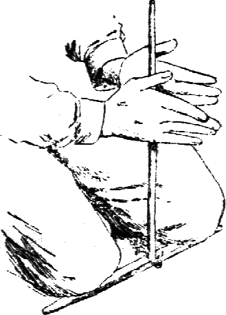Простейший способ состоял в том, что брались две палочки сухого дерева, в одной из которых делали лунку. Первая палочка клалась на землю и прижималась коленом. Вторую – вставляли в лунку, а затем начинали быстро-быстро вращать между ладонями. В то же время необходимо было с силой давить на палочку. Неудобство такого способа заключалось в том, что ладони постепенно сползали вниз. Приходилось то и дело поднимать их вверх и снова продолжать вращение. Хотя, при известной сноровке, это можно делать быстро, все же из-за постоянных остановок процесс сильно затягивался. Гораздо проще добыть огонь трением, работая вдвоем. При этом один человек удерживал горизантальную палочку и давил сверху на вертикальную, а второй – быстро-быстро вращал ее между ладонями. Позже вертикальную палочку стали обхватывать ремешком, двигая который вправо и влево, можно ускорить движение, а на верхний конец для удобства держания стали накладывать костяной колпачок. Таким образом, все устройство для добывания огня стало состоять из четырех частей: двух палочек (неподвижной и вращающейся), ремешка и верхнего колпачка. Таким способом можно было добывать огонь и одному, если прижимать нижнюю палочку коленом к земле, а колпачок – зубами.
