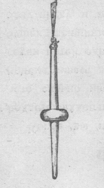 Древнейшим и простейшим приспособлением для производства пряжи была ручная прялка, состоявшая из веретена, пряслицы и собственно прялки. Перед началом работы прядильное волокно прикрепляли на какой-нибудь воткнутый сук или палку с развилкой (позже этот сучок заменили доской, которая и получила название прялки). Затем мастер вытягивал из клубка пучок волокон и присоединял к особому приспособлению для скручивания нити. Оно состояло из палочки (веретена) и пряслицы (в качестве которой служил круглый камешек с дырочкой посередине). Пряслица насаживалось на веретено. Веретено вместе с прикрученным к нему началом нити приводили в быстрое вращение и тотчас отпускали. Повиснув в воздухе, оно продолжало вращаться, постепенно вытягивая и скручивая нить. Пряслица служила для того, чтобы усилить и сохранить вращение, которое иначе прекратилось бы через несколько мгновений. Когда нить становилась достаточно длинной, мастерица наматывала ее на веретено, а пряслице не давала растущему клубку соскользнуть. Затем вся операция повторялась. Не смотря на свою простоту, прялка была удивительным завоеванием человеческого ума. Три операции – вытягивание, кручение и наматывание нити благодаря ей объединились в единый производственный процесс. Человек получил возможность быстро и легко превращать волокно в нить. Заметим, что в позднейшие времена в этот процесс не было внесено ничего принципиально нового; он только был переложен на машины.