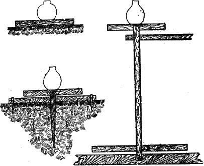 Важным шагом в развитии гончарного производства стало освоение приема вращения. В этом случае мастер прилеплял к готовому днищу кусочек глины и, вращая днище левой рукой, правой обводил кусочком по спирали, постепенно вылепляя грани горшка. При этом способе изделие выходило более ровным. Позже для удобства работы под заготовку стали подкладывать деревянный диск. Потом пришли к мысли, что процесс лепки значительно упроститься, если заставить этот диск вращаться вместе с заготовкой – так был изобретен простейший ручной гончарный круг. Он представлял собой диск, углубленный посередине примерно на половину своей толщины. Своим углублением диск насаживался на выступавший и несколько закругленный конец деревянного стержня, плотно укреплявшегося в земле. Для того чтобы стержень не шатался и удерживал вертикальное положение, между ним и кругом помещали неподвижную деревянную доску с отверстием посередине. Получалось хорошо прилаженное устройство. Одной рукой мастер приводил круг в плавное равномерное вращение, а другой начинал лепку. Это несложное в общем приспособление произвело настоящий переворот в гончарном деле, подняв его до уровня настоящего искусства. Благодаря нему работа заметно ускорилась и улучшилась. При вращении изделия выходили гораздо более плотными и однородными. Их форма получалась правильной и изящной.