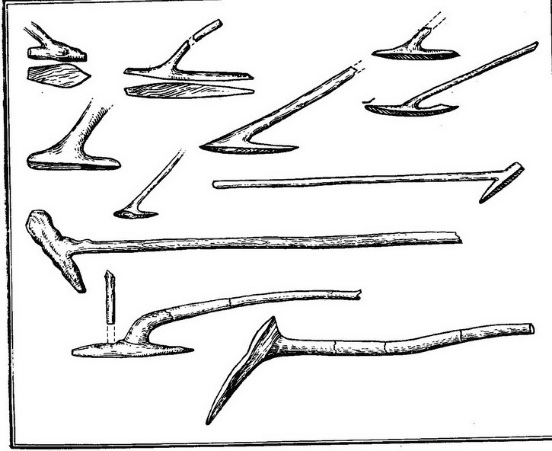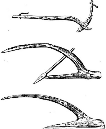 Различные типы «бороздовых палок» – предшественники ранних плугов. (4 тыс. до Р.Х.).