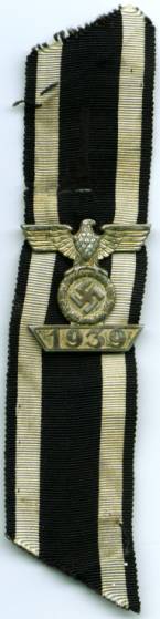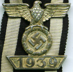 Если награжденный уже является обладателем одного или обоих классов Железного креста времен [Первой] мировой войны, то он получает при вторичном награждении серебряную шпангу с национальной эмблемой и обозначением года – 1939. Шпанга носится на ленте Железного креста 2-го класса или прикрепляется над Железным крестом 1-го класса.