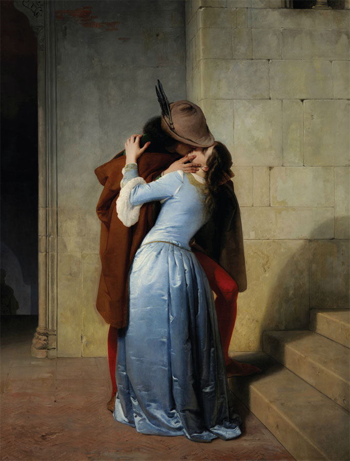 Рис. 1. Хайес Франческо. Поцелуй. Эпизод юности. Нравы XIV века. Деталь, 1859. Холст, масло. Пинакотека Брера, Милан