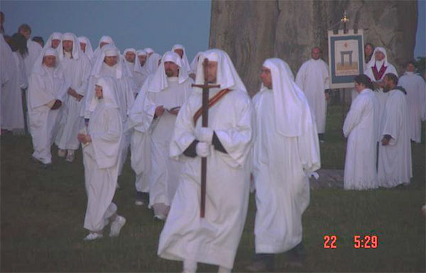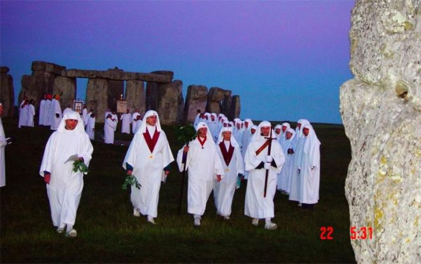 Друиды, постучав веточкой по «пяточному камню», при мне реально поговорили минут 30 с предками. Стучал веточкой по «Пяточному камню» жрец, крайний слева, а разговаривал с предками жрец в центре с золотой подвеской на чёрной ленте.