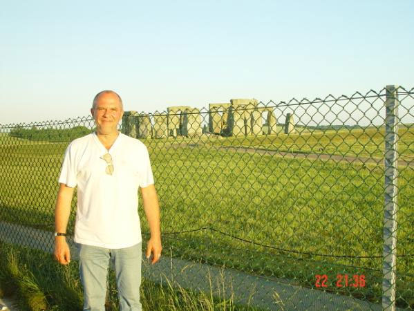 Медленно наступало утро. Начали появляться первые автобусы с группами туристов. День был отличный и я решил заснять и Стоунхендж за забором и себя на его фоне.