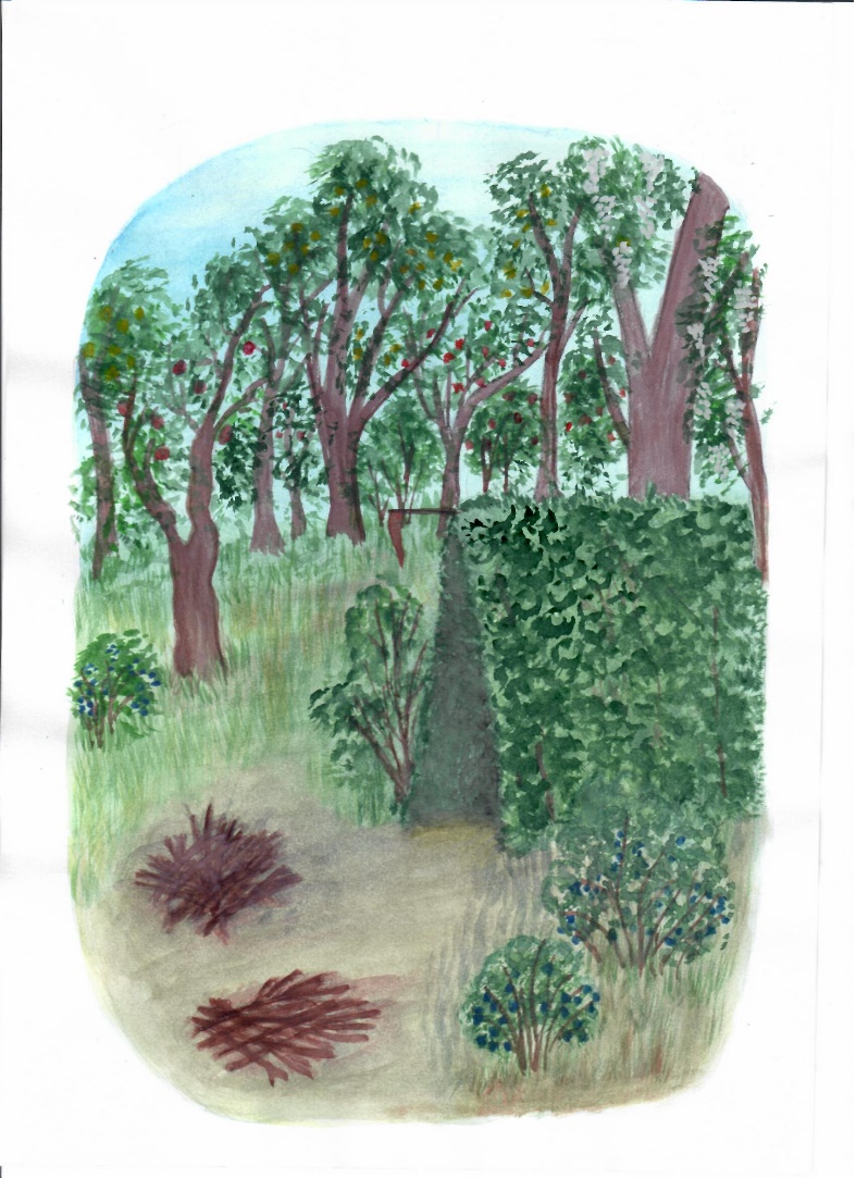 В привычном понимании Лизы и Шурика лес – это высоченные сосны и ели, дубы и берёзы, пихты и кедры, а ещё грибы, мох и ягоды. Поэтому очень чудным показался им лес с сизой голубикой, дикими абрикосами, маленькими румяными яблочками и грушами и ароматно цветущей акацией. Это было больше похоже на заброшенный сад.
