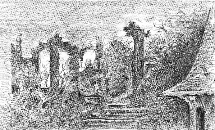 Джекоб прошел сквозь арку замковых ворот – на покореженных петлях болтались обугленные обломки досок. На потрескавшихся ступенях лестницы собирал желуди лесовичок. Едва на него упала тень Джекоба, он пугливо метнулся в сторону. Обыкновенный лесовичок – рыжий, остроносенький, в рубашке и штанах, пошитых из краденых людских обносков, – здесь, на развалинах, таких полно.