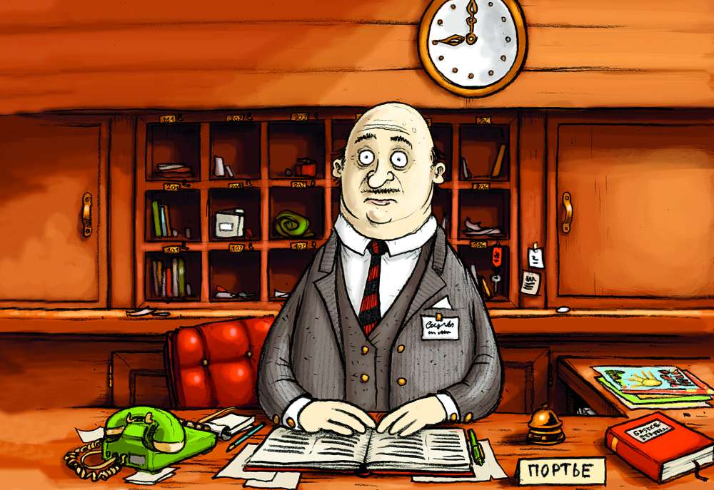 Он с любопытством озирался. За приёмной стойкой невысокий полный портье раскладывал по ящикам почту для гостей.