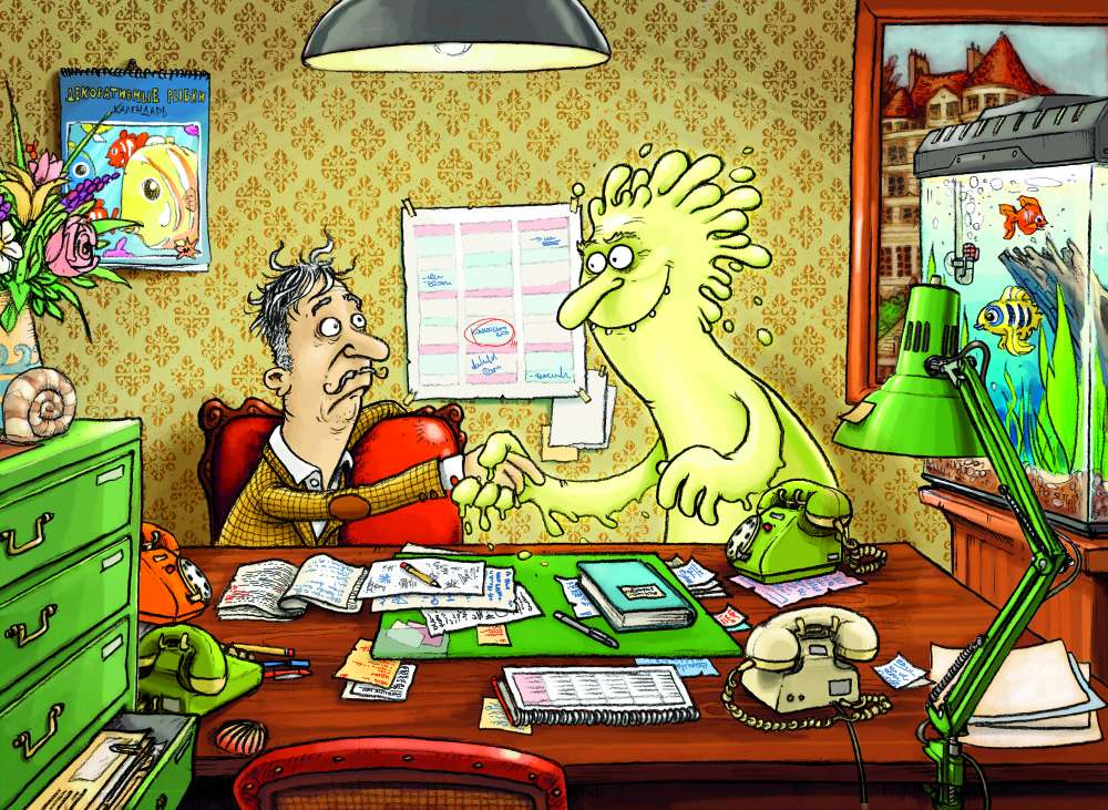 Директор растерянно кивнул и привёл охотников в шикарно обставленный кабинет с огромным письменным столом, на котором стояли четыре телефона и маленький аквариум с крохотными рыбками.