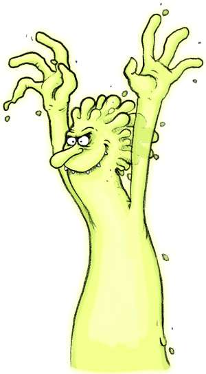 Из мешка торчали только его голова в шлеме, студенистые руки и ноги, защищённые специальными башмаками, как у Тома и Хедвиг Кюммельзафт. Это давало большое преимущество, потому что Хуго в процессе работы не оставлял за собой слизистый след, и его коллеги-охотники не прилипали к этой слизи, что в некоторых ситуациях могло оказаться небезопасным.