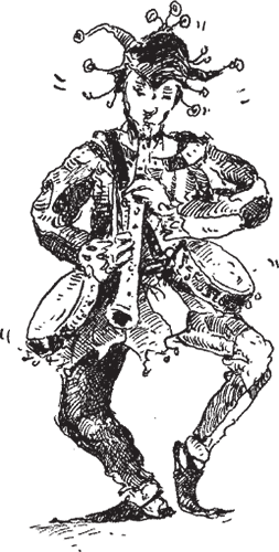 Слева от Принца сидел тот бестолковый неумеха-цирюльник, что чуть не сломал Фенолио челюсть, вырывая зуб, а справа от него – Коптемаз, незадачливый огнеглотатель, так же плохо владевший своим ремеслом, как цирюльник – своим. Насчет цирюльника Фенолио не был уверен, но Коптемаза он не придумывал точно. Бог знает, откуда он взялся! Глядя, как неумело и робко пытается он жонглировать огнем, каждый неизменно называл другое имя: Сажерук – Огненный Жонглер – Укротитель Пламени…