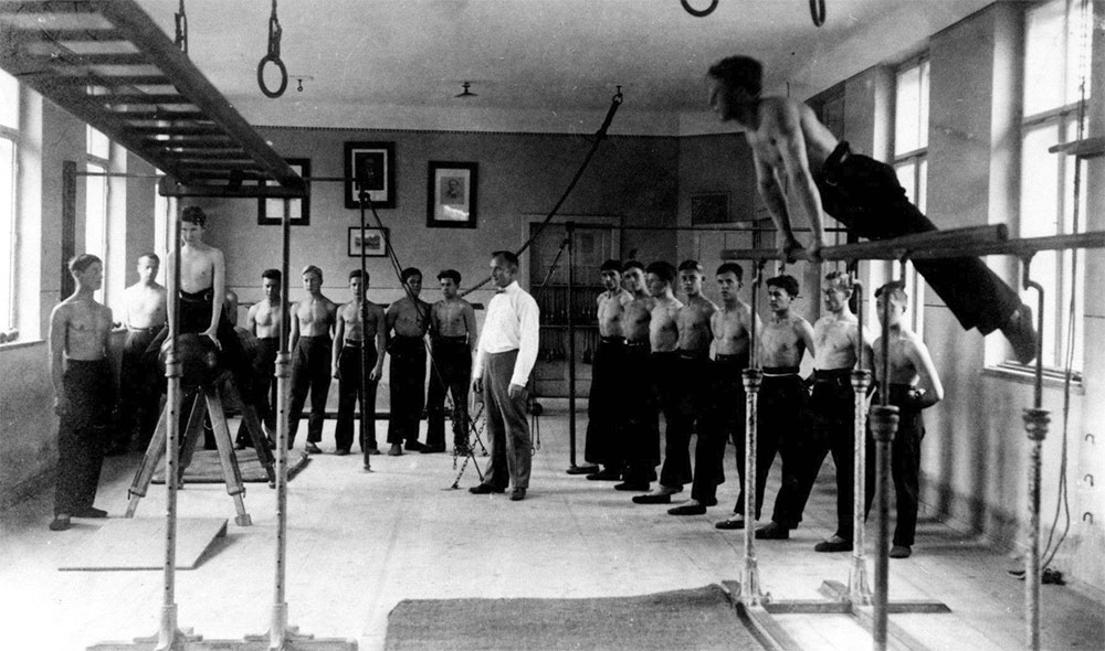 Обучение гимнастике в гимназии в Моравске-Тршебове