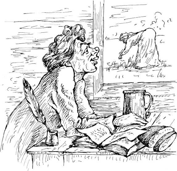 Поле. Ров. На небе солнце.А в саду, за рвом, избушка.Солнце светит. Предо мноюКнига, хлеб и пива кружка.Солнце светит. В клетках птички.Воздух жаркий. Вкруг молчанье.Вдруг проходит прямо в сениДочь хозяйкина, Маланья.