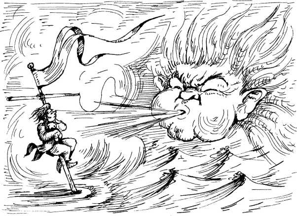 С сердцем грустным, с сердцем полным,Дувр оставивши, в КалеЯ по ярым, гордым волнамПолетел на корабле.То был плаватель могучий,Крутобедрый гений вод,Трехмачтовый град плавучий,Стосаженный скороход.Он, как конь донской породы,Шею вытянув вперед,Грудью сильной режет воды,Грудью смелой в волны прет.И, как сын степей безгранных,Мчится он поверх пучин,На крылах своих пространных,Будто влажный сарацин.Гордо волны попираетМоря страшный властелин,И чуть-чуть не досягаетНеба чудный исполин.Но вот-вот уж с громом тучиМчит Борей с полнощных стран.Укроти свой бег летучий,Вод соленых ветеран!..Нет! гигант грозе не внемлет;Не страшится он врага.Гордо голову подъемлет,Вздулись верви и бока,И бегун морей высокийВолнорежущую грудьПялит в волны и широкийПрорезает в море путь.Восшумел Борей сердитый,Раскипелся, восстонал;И, весь пеною облитый,Набежал девятый вал;Великан наш накренился,Бортом воду зачерпнул;Парус в море погрузился;Богатырь наш потонул!И страшный когда-то ристатель морейПобедную выю смиренно склоняет;И с дикою злобой свирепый БорейНа жертву тщеславья взирает.И мрачный, как мрачные севера ночи,Он молвит, насупивши брови на очи:«Всё водное – водам, а смертное – смерти;Всё влажное – влагам, а твердое – тверди!»И, послушные веленьям,Ветры с шумом понеслись,Парус сорвали в мгновенье;Доски с треском сорвались.И все смертные уныли,Сидя в страхе на досках,И неволею поплыли,Колыхаясь на волнах.Я один, на мачте сидя,Руки мощные скрестив,Ничего кругом не видя,Зол, спокоен, молчалив.И хотел бы я во гневе,Морю грозному в укор,Стих, в моем созревший чреве,Изрыгнуть, водам в позор!Но они, с немой отвагойМачту к берегу гоня,Лишь презрительною влагойДерзко плескают в меня.И вдруг, о спасеньи своем помышляя,Заметив, что боле не слышен уж гром,Без мысли, но с чувством на влагу взирая,Я гордо стал править веслом.
